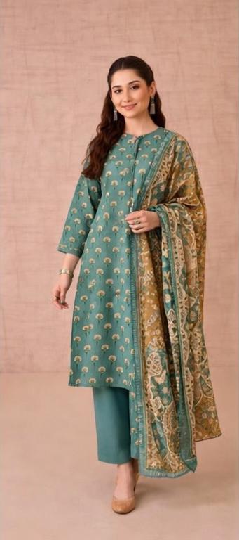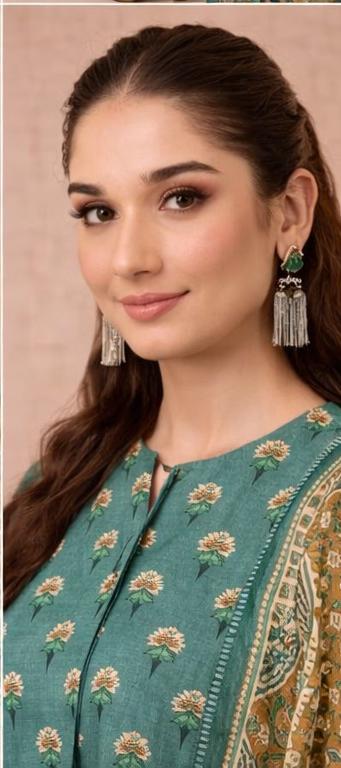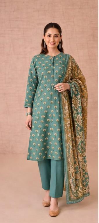 The mint green lawn shirt is adorned with subtle floral motifs that create a soft and elegant visual appeal. Made from premium breathable lawn fabric, it ensures comfort even in warm weather. The outfit is paired with a richly printed dupatta featuring intricate traditional patterns that add depth and luxury to the overall look.